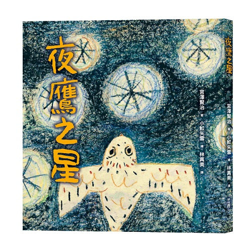 《夜鷹之星》被喻為宮澤賢治最神聖的作品,並被收錄於日本的小學課本中。透過夜鷹的角色,展現多層次的思考,受到欺凌的夜鷹,為了生存也傷害了更弱小的動物,這是現實生活中的殘酷,在自我追尋中意識這點夜鷹,想要超脫這樣的自我,牠的努力帶來了意想不到的結局……這個作品展現了宮澤賢治對於自己處境的反思,以及對生命的悲憫與理想。插畫家小鮫矢雪以柔和的蠟筆線條,濃烈的色彩,描繪了夜鷹炙熱的哀傷和閃耀生命之光的傑作。