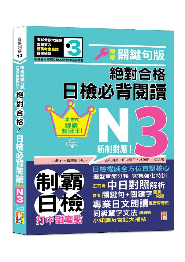沉浸式聽讀雙冠王 精修關鍵句版 新制對應 絕對合格!日檢必背閱讀N3(25K+QR碼線上音檔)